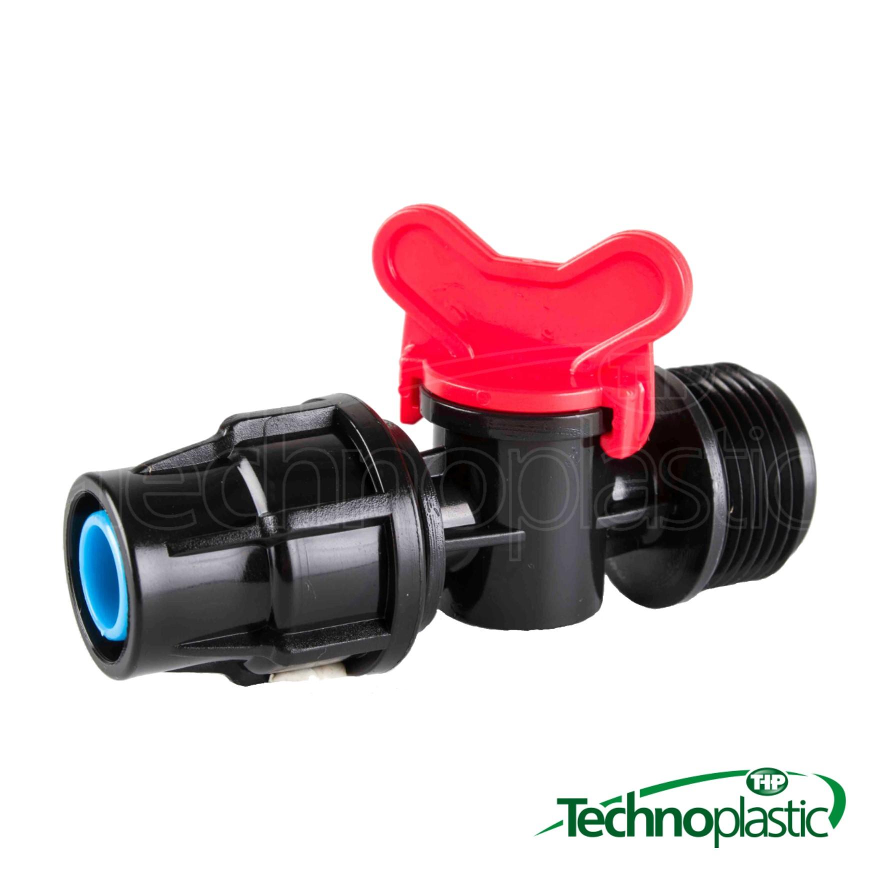 Βανάκι αρσενικό 3/4″ × Ρακόρ Lock για σωλήνα Φ20 mm, με κόκκινο χειριστήριο, για εύκολη ρύθμιση ροής και αξιόπιστη σύνδεση.