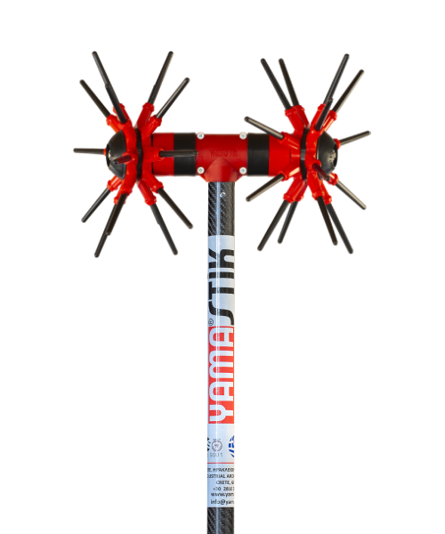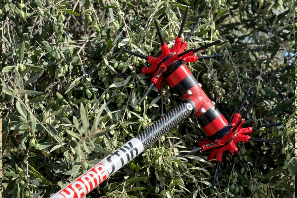 Η κεφαλή διαθέτει παλμική–περιστροφική κίνηση τύπου “αχινός”, η οποία διεισδύει εύκολα στο φύλλωμα, αποκολλά τον καρπό χωρίς να καταπονεί τα κλαδιά και περιορίζει τις ζημιές στο δέντρο. Το carbon κοντάρι μήκους 2,2 m καθιστά το μηχάνημα ιδιαίτερα ελαφρύ και ανθεκτικό, επιτρέποντας πολύωρη εργασία με άνεση.