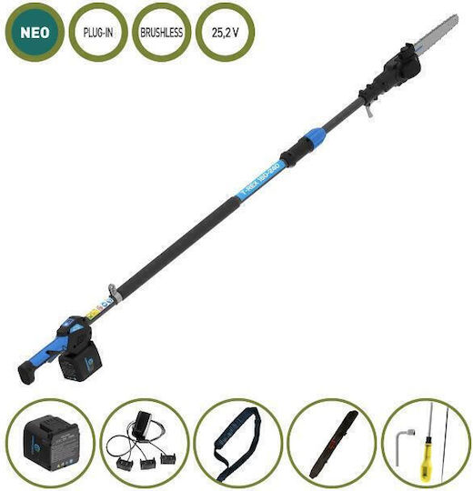 Επαγγελματικό κονταροπρίονο μπαταρίας με τηλεσκοπικό κοντάρι, ιδανικό για κλάδεμα σε ύψος.