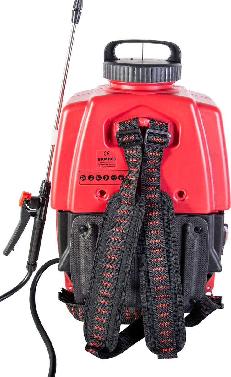 Ηλεκτρικός ψεκαστήρας πλάτης Raider 16 λίτρων. Διαθέτει μπαταρία ιόντων λιθίου χωρητικότητας 10Ah, η οποία έχει μεγαλύτερη απόδοση και διάρκεια σε σχέση με τις συμβατικές μπαταρίες, αλλά και μικρότερο βάρος. Έτσι μπορείτε με άνεση να χρησιμοποιήσετε τον ψεκαστήρα, είτε στον κήπο είτε στην γεωργική παραγωγή. Διαθέτει σωλήνα μήκους 1.5m και και τηλεσκοπική επέκταση 0.85m. Η αντλία δουλεύει με τάση 12v και μέγιστη πίεση 4.5 bar. Η μέγιστη απόσταση κάθετου ψεκασμού είναι 7m ενώ οριζόντιου ψεκασμού είναι 8m