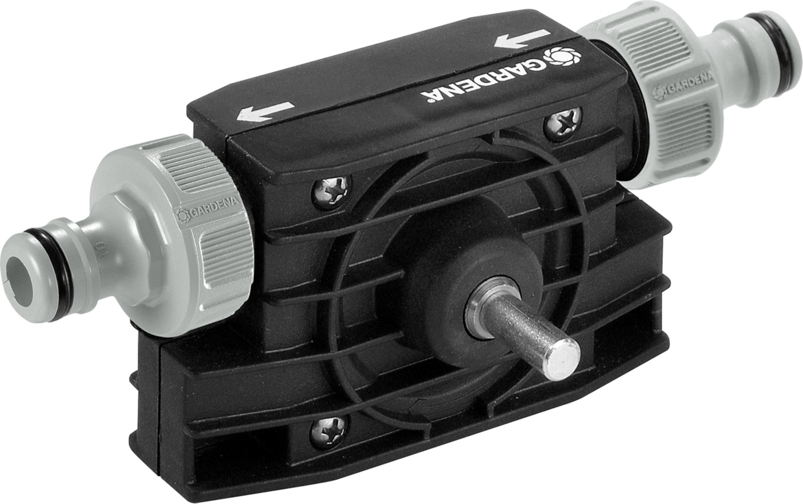 Ενδείκνυται για την ευέλικτη μεταφορά ή αποστράγγιση μικρότερων ποσοτήτων νερού. Συναρμολογείται απλά στο ηλεκτρικό τρυπάνι. Ο άξονας μετάδοσης κίνησης εφαρμόζει στο σφιγκτήρα οποιουδήποτε τυπικού ηλεκτρικού τρυπανιού (Ψ 8mm). Με τα συνδετικά εξαρτήματα Original GARDENA System, είναι έτοιμο για άμεση λειτουργία.