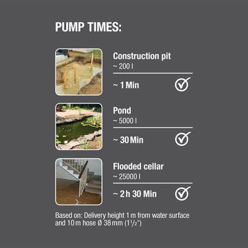 Υποβρύχια αντλία λυμάτων από τον κατασκευαστή Gardena, χρησιμοποιείται για άντληση ακαθάρτων νερών που μπορεί να περιέχουν σωματίδια.