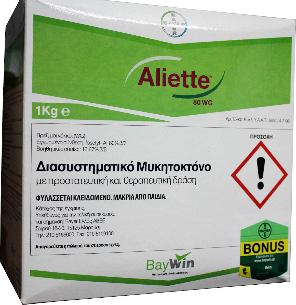 Σύνθεση: fosetyl-Al 80% β/β, Βοηθητικές ουσίες 16,67% β/β.
