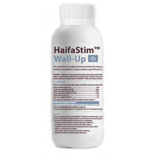 ο HaifaStim ™ WALL – UP είναι ένα προϊόν με συμπυκνωμένη σύνθεση που παρέχει στα φυτά εύκολα διαθέσιμο και αφομοιωμένο πυρίτιο σε συνδυασμό με χηλικό Χαλκό και Μαγγάνιο σε μορφή EDTA πλήρως διαλυτά στο νερό.