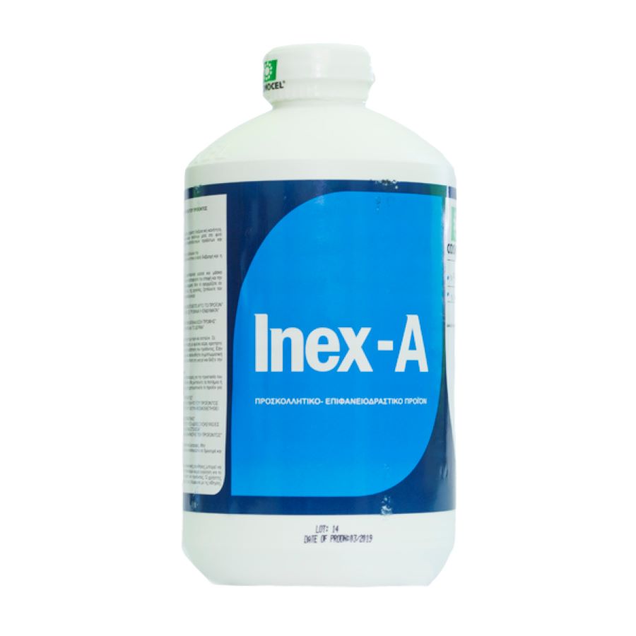 Το Inex-A 1lt είναι ένα μη ιονικό επιφανειοδραστικό μίγμα που ομογενοποιεί το ψεκαστικό διάλυμα.Είναι αντιαφριστικό, αυξάνει τη διασπορά και τη διείσδυση και αυξάνει τη διασυστηματική δράση των σκευασμάτων.