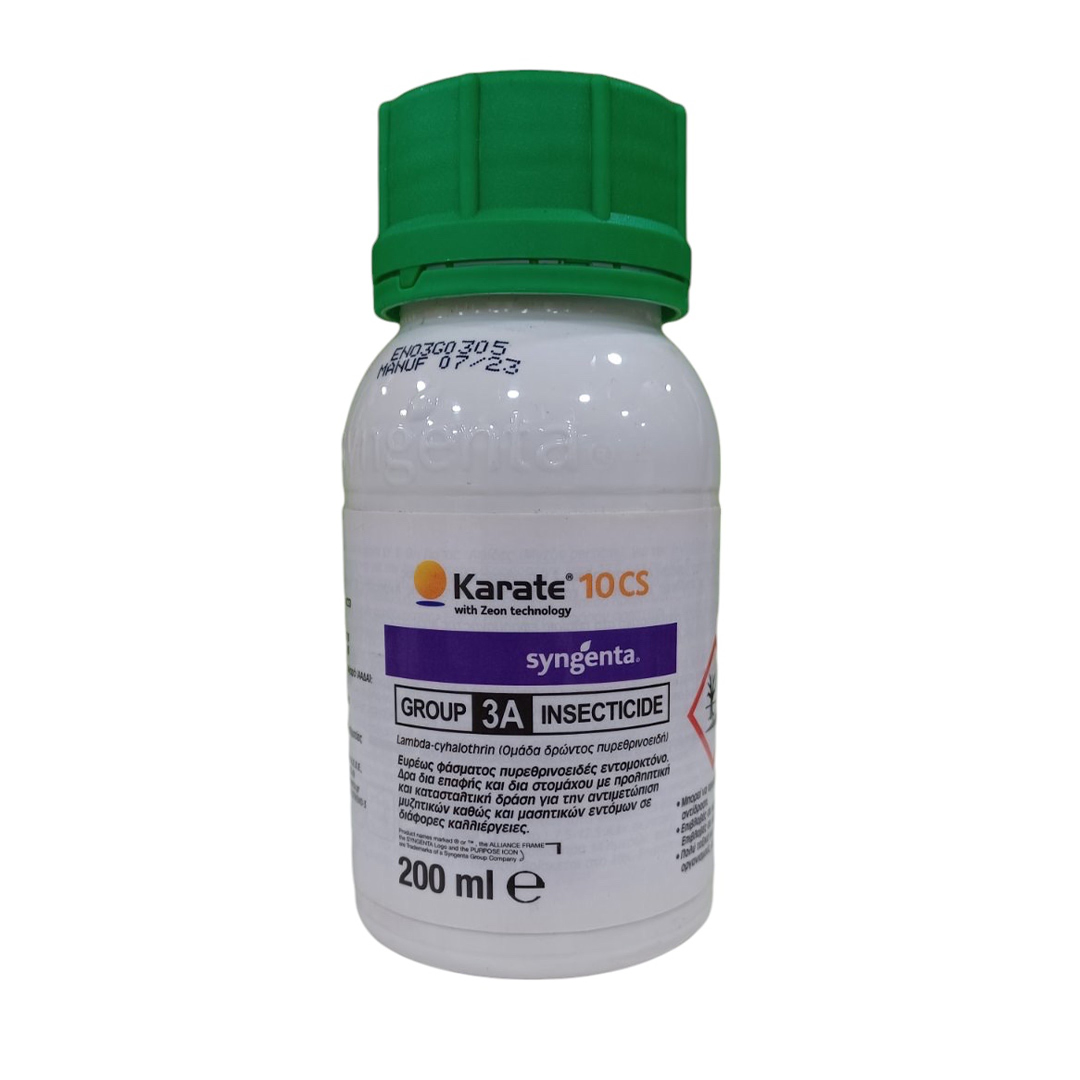 To δυνατό χτύπημα κατά των εντόμων. Tο Karate Zeon 10 CS ενισχυμένο πάντα με την τεχνολογία Zeon, απευθύνεται σε υπεύθυνους παραγωγούς, καθώς συνδυάζει υψηλή αποτελεσματικότητα και μεγαλύτερη διάρκεια δράσης στην καταπολέμηση ευρέως φάσματος μασητικών και μυζητικών εντόμων.Το Karate 10 CS with zeon technology είναι ευρέως φάσματος πυρεθρινοειδές εντομοκτόνο και δρα δι’ επαφής και διά στομάχου, με προληπτική και κατασταλτική δράση για την αντιμετώπιση μυζητικών καθώς και μασητικών εντόμων σε διάφορες καλλιέργειες. Δρα στο νευρικό σύστημα των εντόμων, παρεμποδίζοντας το κλείσιμο των διαύλων Na+ στους νευράξονες των νευρικών κυττάρων. Αυτό έχει ως αποτέλεσμα μία συνεχή νευρομυϊκή μεταφορά μηνυμάτων, που οδηγεί σε υπερδιέγερση, παράλυση και θάνατο των εντόμων.