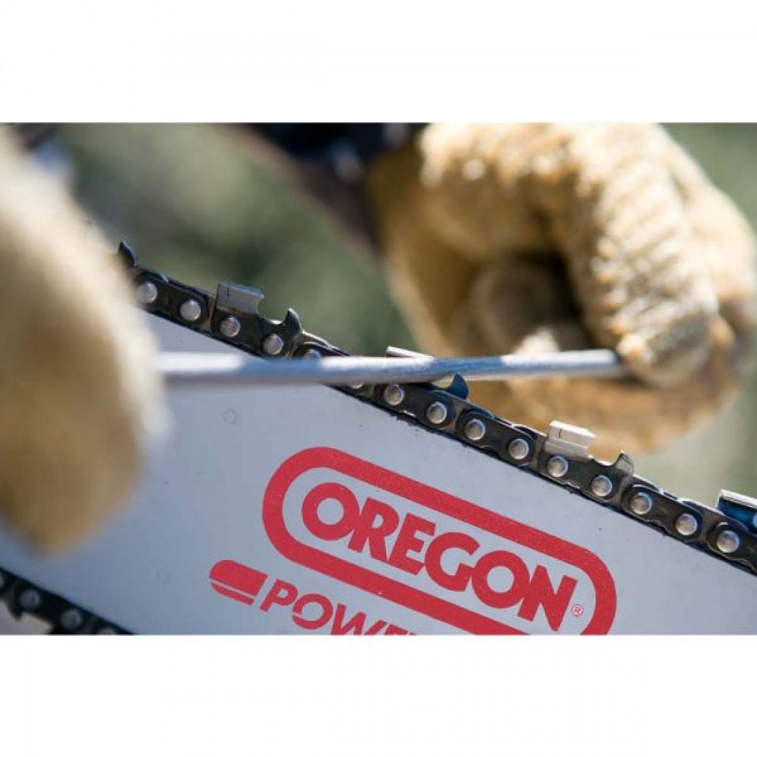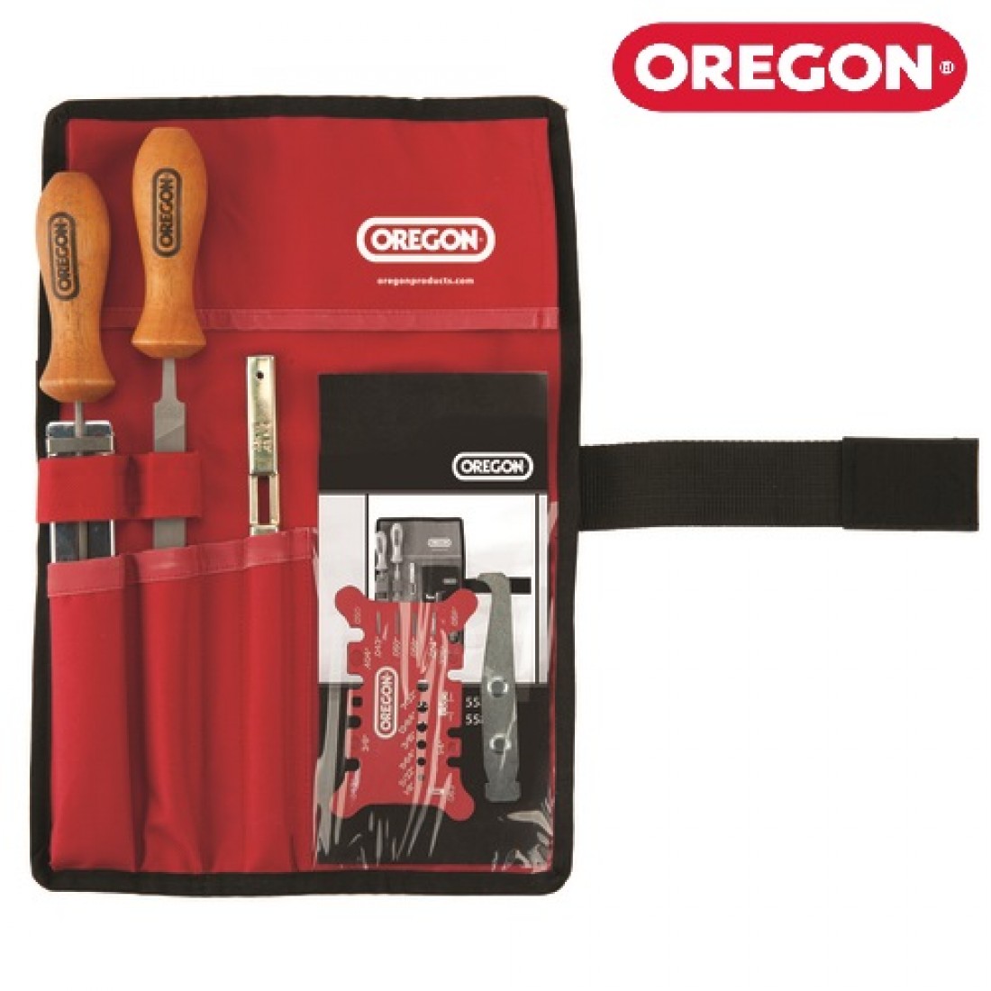 Σετ εκκίνησης για τη συντήρηση της αλυσίδας και της λάμας με βήμα 3/8″. Περιλαμβάνει:Ένα συναρμολογημένο οδηγό τροχίσματος της λίμας, για τη συντήρηση της άνω επιφάνειας της αλυσίδας.Μια συναρμολογημένη, με ξύλινη λαβή, επίπεδη λίμα και ένα ειδικό εργαλείο για τη συντήρηση των οδηγών βάθους κοπής της αλυσίδας. Έναν καθαριστήρα αυλακιού λάμας, για τον καθαρισμό του αυλακιού της λάμας και των οπών λαδιού.