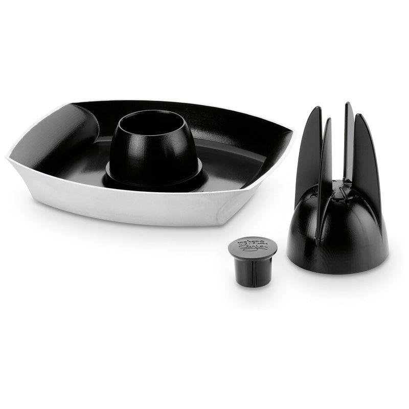 Ο κώνος κρατάει το πουλερικό σε όρθια θέση ενώ ταυτόχρονα επιτρέπει στο ταψάκι να κρατάει τα υγρά που μπορεί να χρησιμοποιηθούν στο σερβίρισμα, για σάλτσα ή top.