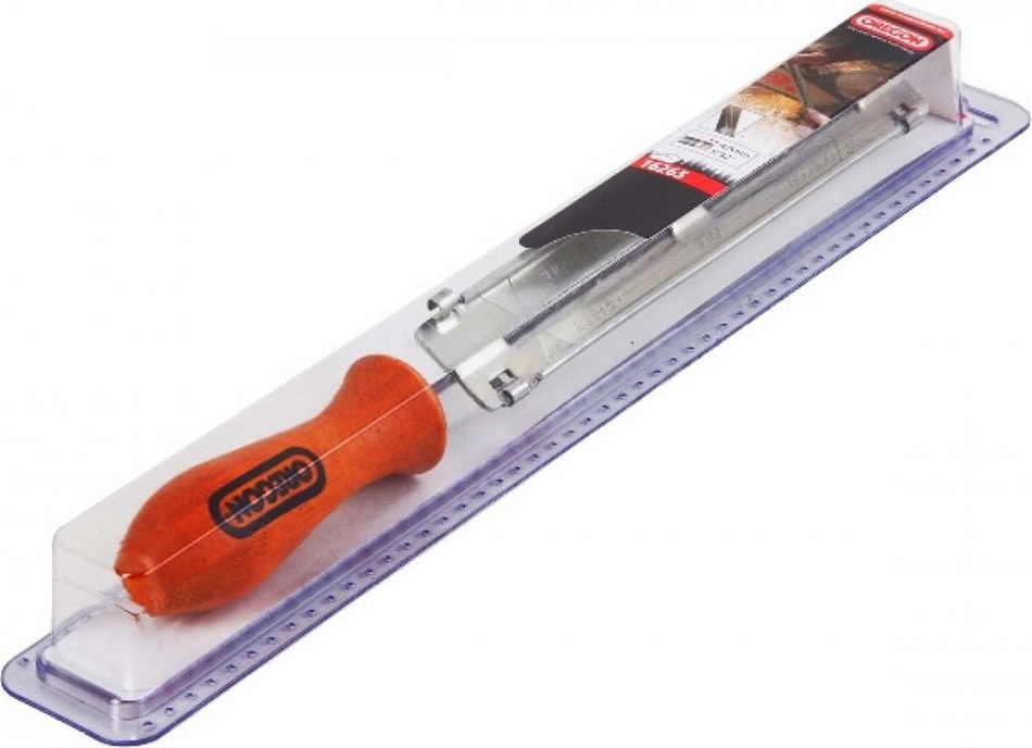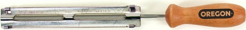 Οδηγός Τροχίσματος Oregon 16265 5/32′ (4.0 χιλιοστά). Ειδική λάμα με στρόγγυλη λίμα πάχους 4,0 χιλιοστών (5/32″) και ξύλινη εργονομική λαβή, με την βοήθεια των χαραγμένων οδηγών που βρίσκονται πάνω της βοηθά στο τρόχισμα της αλυσίδας με ασφάλεια και ακρίβεια.