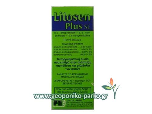 To LITOSEN PLUS είναι μία ορμόνη-διεργέτης της φυσικής δραστηριότητας των φυτών. Η εφαρμογή του έχει σαν αποτέλεσμα την επιτάχυνση και αύξηση της ριζοβολίας, την πρωίμιση και βελτίωση της ποιότητα και ποσότητας της παραγωγής. Επίσης επιδρά θετικά στη γονιμοποίηση και σχηματοποίηση των καρπών (καλύτερη καρπόδεση), όταν χρησιμοποιείται κατά την περίοδο της ανθοφορίας. Εφαρμόζεται συνήθως με ψεκασμό του φυλλώματος, ριζοπότισμα ή διαβροχή των σπόρων. Χρησιμοποιείται σε όλες σχεδόν τις καλλιέργειες, εσπεριδοείδη (ξυνά), μηλιά, αχλαδιά, αμπέλι, λαχανικά, τομάτα, πατάτα, καλλωπιστικά, ανθοκομικά. Ειδικά στα ξυνά (λεμονιά, πορτοκαλία, κλπ) βοηθάει πολύ στο δέσιμο των καρπών, στις περιπτώσεις δέντρων που δυσκολεύονται να κρατήσουν αρκετούς καρπούς μετά την ανθοφορία. Στην περίπτωση αυτή, απαιτούνται δύο τουλάχιστον ψεκασμοί, ένας δέκα μέρες πρίν την άνθηση και ένας όταν τα δέντρα βρίσκονται στο στάδιο του μπουμπουκιού. Επίσης το LITOSEN βοηθά πολύ στην καρπόδεση της ντομάτας γι αυτό και γίνεται ένας ψεκασμός όταν εμφανιστούν τα πρώτα λουλούδια στα φυτά ντομάτας με καλό ψέκασμα όλου του φυτού και άλλος ένα ψεκασμός μετά 10 μέρες. Η αναλογία ψεκασμού είναι 1,7-2 cc/10 lt νερό (17-20 cc στα 100 λίτρα). Για την δημιουργεία ριζικού συστήματος των μοσχευμάτων συνδιάζεται με σκεύασματα απο φύκια (AGROCEAN) αντικαθιστόντας την ορμόνη ριζοβολίας. To LITOSEN PLUS μπορεί να αναμειχθεί και να συνδιαστεί με τα περισσότερα φυτοπροστατευτικά προιόντα και διαφυλλικά λιπάσματα που χρησιμοποιούμε στις καλλιέργειες. Διατίθεται σε τρείς συσκευασίες όπως φαίνεται στα θυγατρικά προιόντα.