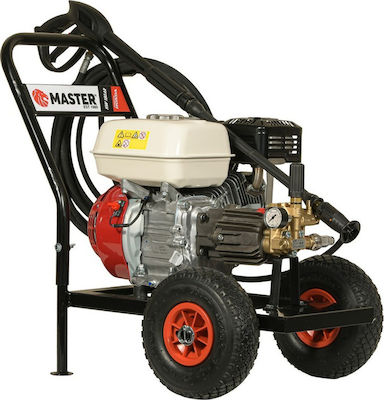 Βενζινοκίνητο πλυστικό συγκρότημα MASTER . Με υψηλής απόδοσης και αξιοπιστίας αντλία ANNOVI REVERBERI, σε ελληνικής κατασκευής μεταλλική βάση με ηλεκτροστατική βαφή και ρόδες. Η συσκευασία περιλαμβάνει φίλτρο νερού, μανόμετρο, σωλήνα υψηλής πίεσης 10m, κάννη τύπου βεντάλια και πιστόλι. Διατίθεται πληθώρα αξεσουάρ, όπως κάννη Turbo, κιτ αμμοβολής και σετ απόφραξης.