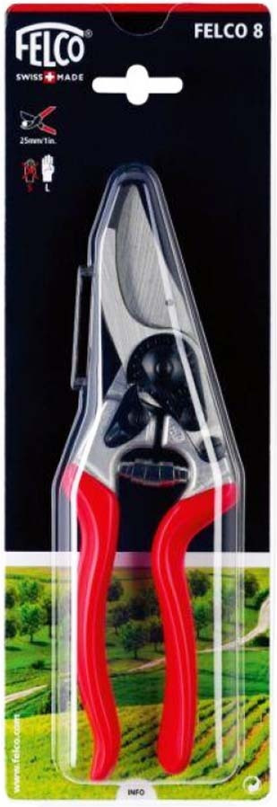 Η μεγάλη άνεση που θα νιώσετε με αυτό το ψαλίδι κλαδέματος/κλαδευτήρι προέρχεται από την εξαιρετική εργονομία που είναι ξεκάθαρη στον σχεδιασμό της FELCO. Η γωνιωτή κεφαλή κοπής αποτρέπει με ασφάλεια την ολίσθηση του εργαλείου στο χέρι σας και το FELCO 8 γίνεται πραγματικά ένα κομμάτι δικό σας. Προσφέρει ευκολία χρήσης, χαρίζει άνεση που γίνεται αμέσως αντιληπτή και μειώνει την πιθανότητα κούρασης των μυών σας νωρίς κατά το κλάδεμα. Η αίσθηση άνεσης ενισχύεται από τους ελαστικούς αποσβεστήρες κραδασμών που συμβάλλουν στη μείωση της καταπόνησης των καρπών σας κατά την κοπή. Επιπλέον, το σχήμα της λαβής βελτιστοποιεί συγκεκριμένα τη δύναμη που μπορείτε να εφαρμόσετε στην κοπή που επιλέγετε. Ο μηχανισμός ρύθμισης ακριβείας καθιστά επίσης δυνατή τη ρύθμιση της κεφαλής κοπής, ανάλογα με τις απαιτήσεις σας.