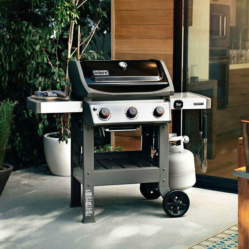 Ψησταριά υγραερίου με 3 καυστήρες από ανοξείδωτο χάλυβα, με εξωτερικό θερμόμετρο στο καπάκι και συμβατή με το θερμόμετρο iGrill3, με σχάρα θέρμανσης Tuck-away και σχάρες Gourmet GBS System®, για να μπορείτε να χρησιμοποιήσετε τα αξεσουάρ GBS®.