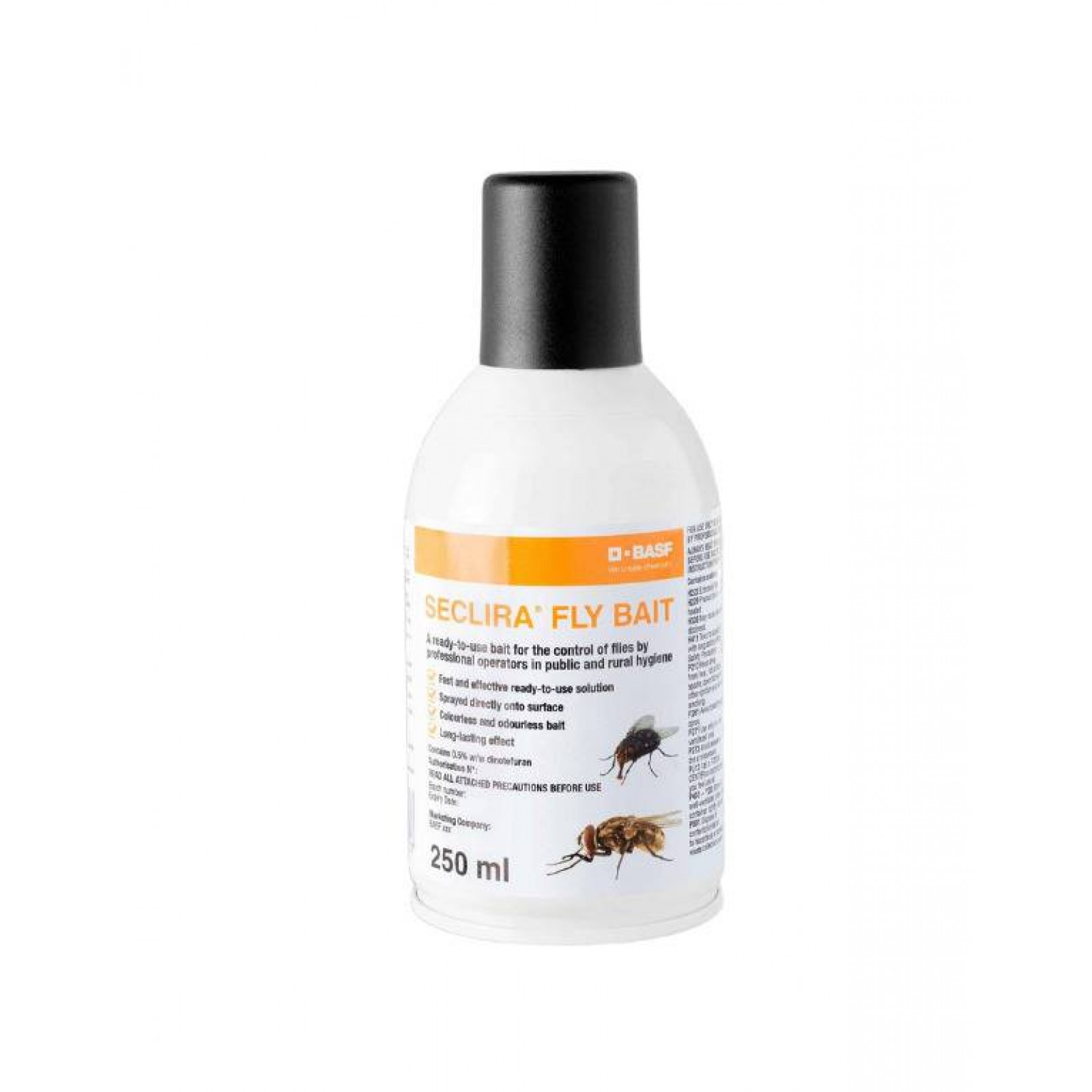 Το Seclira Fly Bait είναι ένα έτοιμα προς χρήση εντομοκτόνο σε μορφή ψεκασμού, σχεδιασμένο ειδικά για την αποτελεσματική καταπολέμηση μυγών – τόσο της οικιακής (Musca domestica) όσο και της στάβλινης (Stomoxys calcitrans). Περιέχει dinotefuran 0,5% ως δραστική ουσία και ειδικό προσκολλητικό και γευστικό παράγοντα που προσελκύει τα έντομα να προσγειωθούν και να καταναλώσουν την επιφάνεια – για δράση μέσω επαφής και λήψης τροφής.
